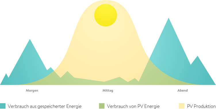 Morgens besteht ein besonders großer Strombedarf: Kaffeemaschine, Warmwasser und elektrische Zahnbürste benötigen Energie. Zu dumm, dass die Sonne noch nicht scheint – die Photovoltaikanlage produziert erst wenig Strom. Aber kein Problem mit einem nachhaltigen Stromspeicher. Er denkt mit und versorgt Ihr Haus mit der gespeicherten Energie des Vortags.
